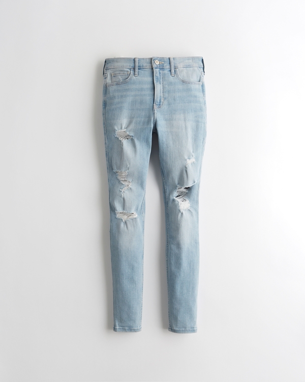 . Mid-Rise Ripped Light Wash Super Skinny Jeans. CURVY MED SHRED MOM - Straight leg jeans - blue denim. Hollister Advanced Stretch Low-Rise Boot Jeans.